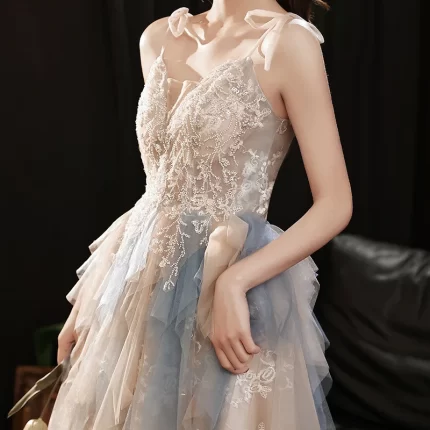 New Tassel High Waisted Prom Gown Elegant Women Banquet Hollow Out Dress Sexy Sleeveless V Neck Temperament Swing Long Dresses