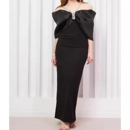 Women Sexy Off Shoulder Ruched Black Maxi Long Diamonds Celebrity Bodycon Bandage Dress 2025 Elegant Evening Club Party Dress