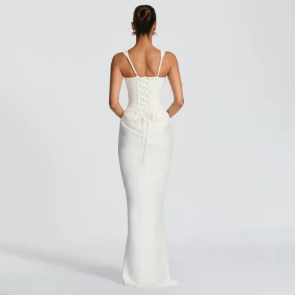 Kwtx Long Sleeve Bodycon Maxi Dress Slimming Boning Spaghetti Strap Backless Casual Elegant Minimalist Comfortable Premium