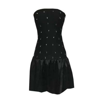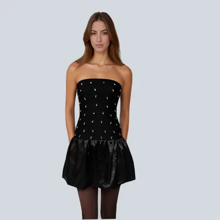 Ladies’ Elegant Mini Handcrafted Diamond Satin Pleated Fashion Slim-Fit Bandeau Holiday Birthday Party Strapless Dress