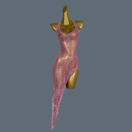 Women Luxury Shiny Pink Crystal Mesh Party Dresses Evening Birthday Celebrity Prom Gowns Nightclub Birthday Dance Costume Xinghe