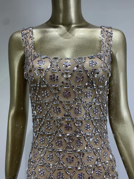High Quality Women Sexy Pearl Beading Sequins Bodycon Mid-calf Dress Fashion Celebrate Evening Party Birthday Dress Wholesale