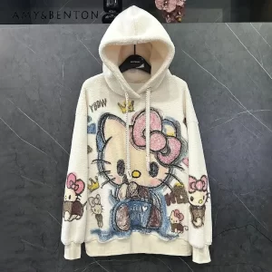 2025 Autumn Winter New Sweet Age-Reducing Cartoon Hooded Sweatshirt For Women’s Loose Casual Top Long Sleeved Lace-up Sudaderas – AliExpress