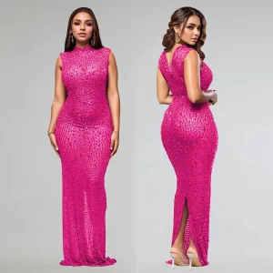 2025 Fall Diamonds Hot Rhinestones O-neck Women Sleeveless Bodycon Long Dress Birthday Party Evening Prom Maxi Dresses
