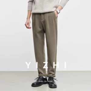 2025 Autumn Winter New Thickened Business Casual Pants Stylish Men’s Suit Pants Loose Straight-Leg Tapered Pants