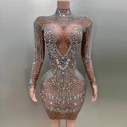 Sexy Sheath Mini Dress Flashing Luxury Rhinestones Tassel Birthday Evening Party Nightclub Singer Performance Costume Stage Wear