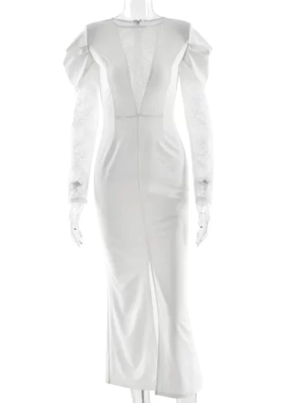 JULISSA MO Patchwork Lace See Through Slit Women Maxi Dress Long Sleeve Deep V-neck Dress Winter New Elegant Party Evening Dress