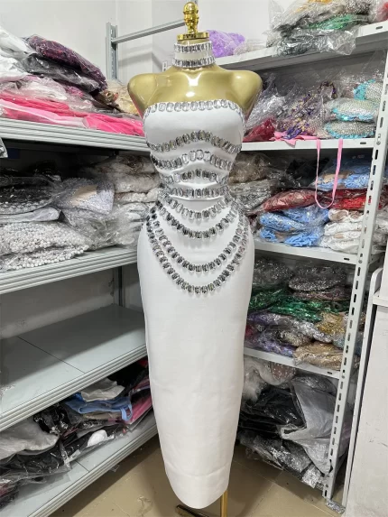 Factory Wholesale Women 2025 Elegant Strapless Crystal Embroidery Bandage Gowns With Choker Birthday Evening Party Dresses