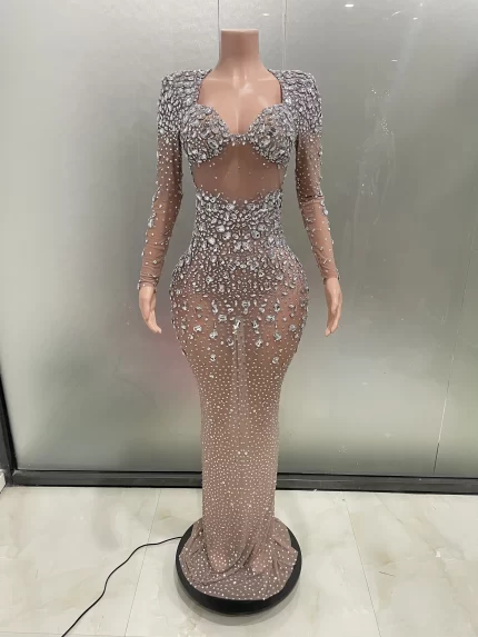 Luxury Evening Shinny Fancy Rhinestone Dress Performance Costume Women Prom Gown Club Party Celebrate Birthday Photoshoot Dress