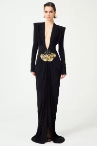 2025 New Spring Women Long Sleeve Deep V-Neck Bodycon Long Dress Elegant Evening Party Celebrate Cocktail Outfit Vestido