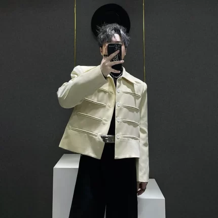 Men Suit Short Style Shoulder Pad Pocket Decoration Design Jacket Streetwear Fashion Business British Jacket Men’S Clothing 2025