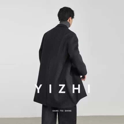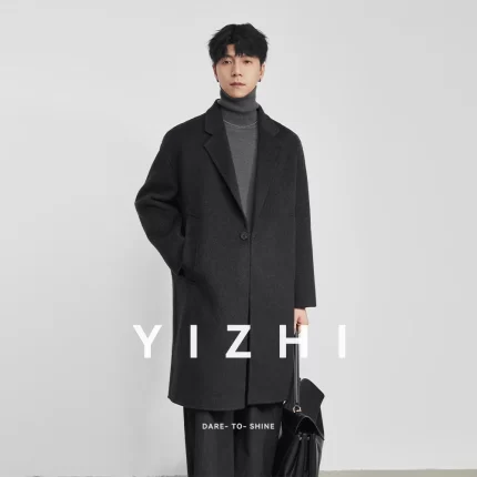 Fashion Men’s Long Wool Coat 2025 Winter New Solid Color Thickened Loose Versatile Warm Double-Faced Wool Outerwear