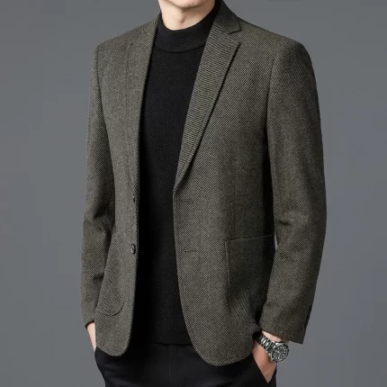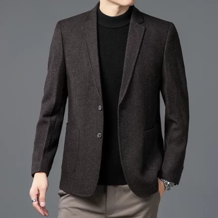 Men Elegant Tweed Blazer Coffee Wine Red Gray Tailored Outfit Sheep Woolen Blended Outfits Middle Class Cashmere Attire Winter