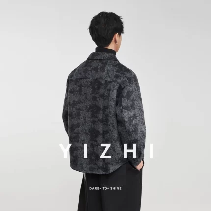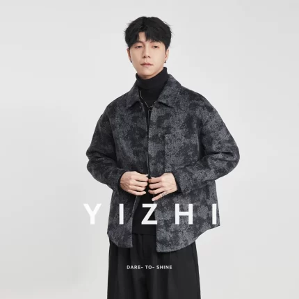 Fashion Men’s Lapel Jacquard Wool Jacket 2025 Winter New Loose Casual Trendy Wool Coat