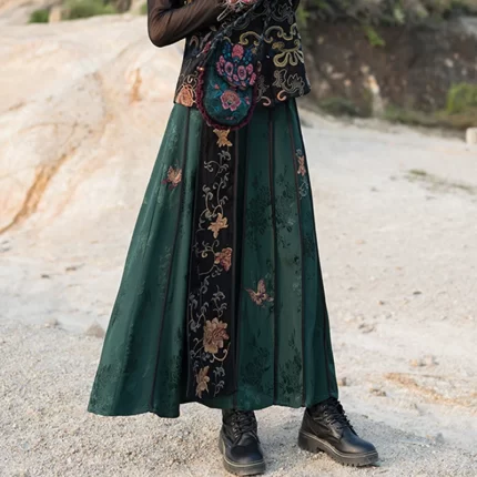 High Quality Floral Embroidery Long Skirt Women New Arrival 2025 Spring Chinese Style Vintage Ladies Elegant A-line Skirts M932