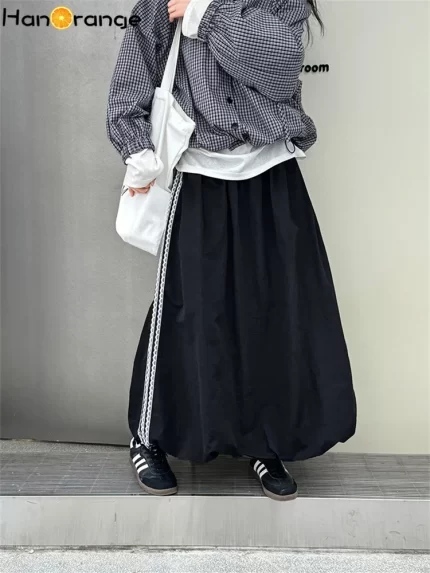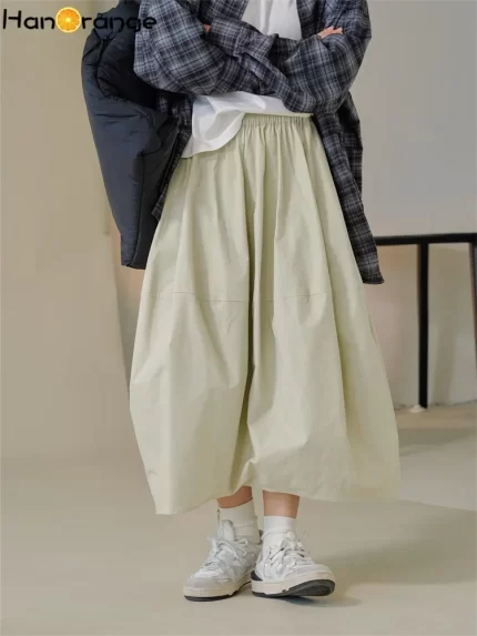 HanOrange 2025 Early Spring Lazy Arc Elastic Waist Skirt Loose Long Skirt Dark Gray Green/Gray Bean Green
