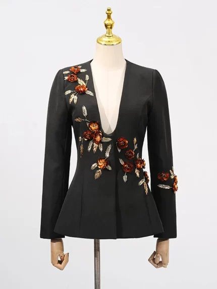 DTLumika Diamonds Jewled Slim Fit Suit Jacket for Women, Single Button Black Suit Blazer, 2025 Autumn New Designer Tux