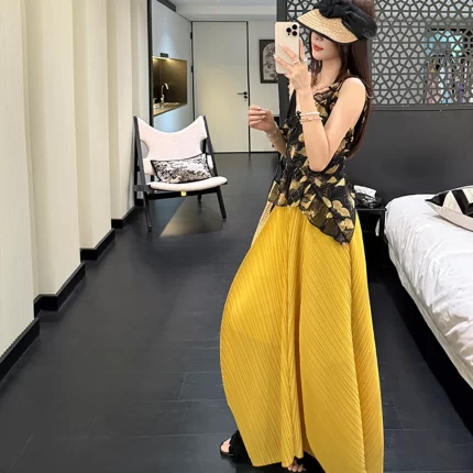 Miyake Pleated 2026 New Spring and Summer Fashion Yellow Irregular Hem Half-body Skirt Women Pleated Long Skirt To Cover Meat