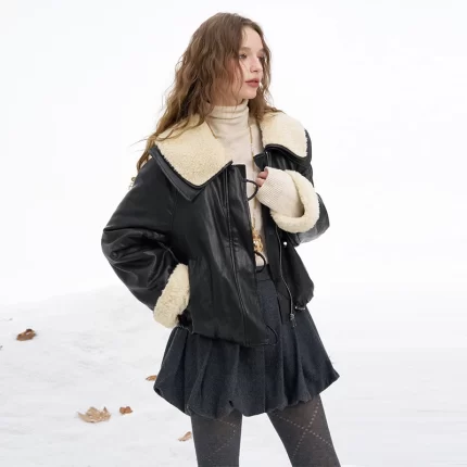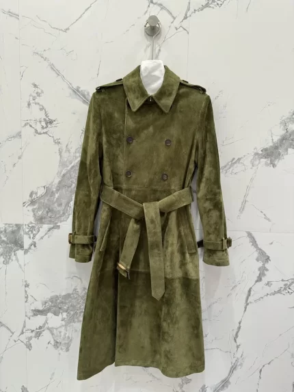 RetroAutumn New Retro Brown Green Suede Sheepskin Jacket Elegant Waistband Waist Cinched Mid Length Windbreaker Women’s Clothing
