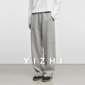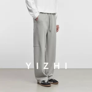 2025 Spring and Autumn New Men’s Casual Wide Leg Pants Fashion Elastic Waist Loose Straight Cut Scimitar Pants Men’s Casual Pant
