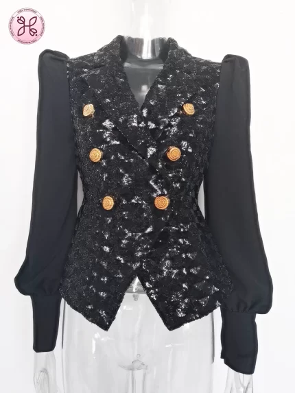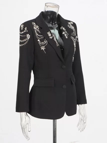 TWOTWINSTYLE Black Spliced Beading Temperament Blazer Female Lapel Long Sleeve Slimming Commute Luxury Women’s Blazers Fashion