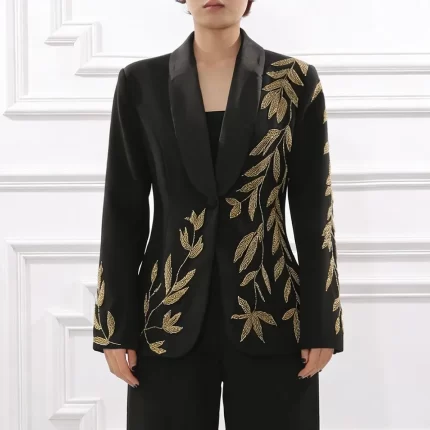 DTLumika Luxury Crystals Party Suit for Women, S M L Womens Black Suit Blazer, Actual Pictures Formal Slim Fitting Suit