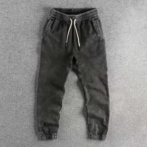 2025 Spring and Autumn New American Retro Loose Casual Sport Sweatpants Men’s 82% Cotton Washed Old Elastic Ankle-tied Trousers