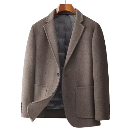 Quiet Luxury Men Double-Faced Wool-Blend Suit Hand Sewing Woolen Blazers With Detachable Down Puff Vest Liner Design Overcoat