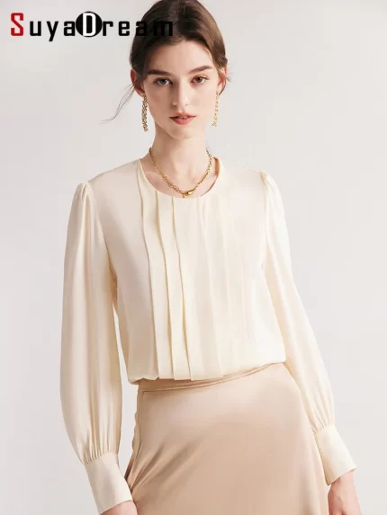 SuyaDream Women’s Silk Blouse, 90% Silk 10%Spandex, Round Collar Chic Shirts, Elegant Top, Spring Autumn 2026