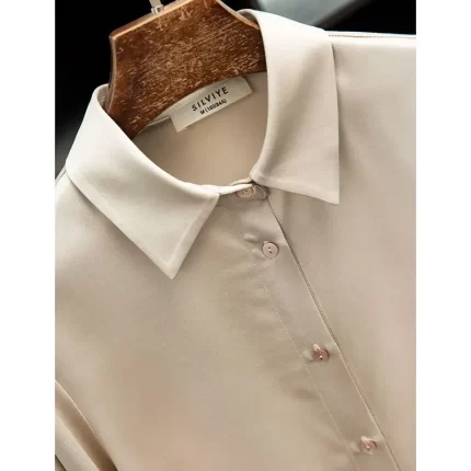 Spring and Summer Silk Shirts Thickened 40MM Silk Shirts White Commuting Silk Shirts WOMEN 100% Mulberry Silk Blouse
