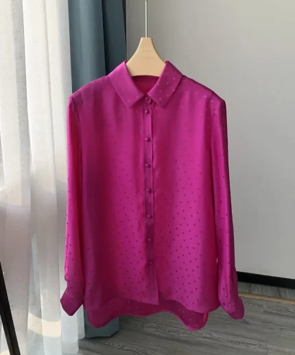 French Style Loose and Lazy 100% 18mm Real Silk Smooth Crepe Satin Smooth Dot Jacquard Silk Long Sleeved Shirt for Women