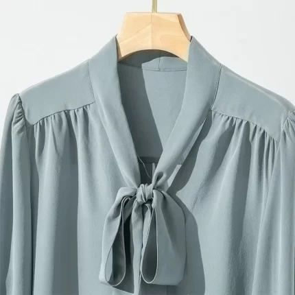 Mulberry Silk Shirt Women’s Silk Bow Ribbon Shirt Temperament Long Sleeve Women Blouse Sand Washed Crepe De Chine Silk