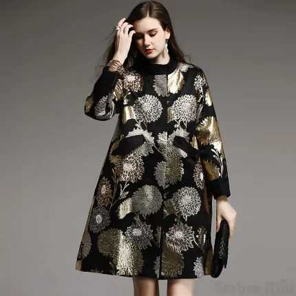 Embro Mill Vintage Royal Spring Autumn Coat Woman Elegant Lady Loose Chinese Style High-end Beading Trench Coat Female M-XXL