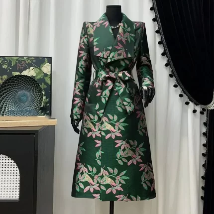 Fashion Women Clothing Trench Coat 2025 Spring Autumn New Temperament Print Chinese National Style Lapel Women Trench Coat H691