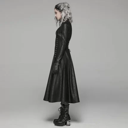 PUNK RAVE Women’s Dark Punk Front Zipper Stand Collar Maxi Overcoat Goth Stage Performance Cosplay Womens Trench Long Coats