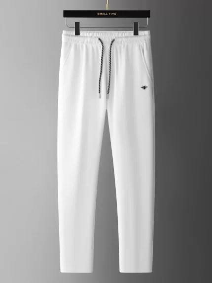 JSBD summer high-end cool air layer solid-color sweatpants with bee embroidery men’s drawstring straight sport casual pants