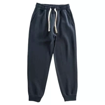 Autumn New American Retro Thick Solid Color Knitted Sweatpants Men’s Simple Elastic Waist Drawstring Sport Casual Loose Pants