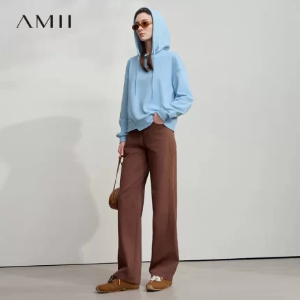 AMII Minimalist Women Hoodie Cotton 2025 Autumn Streetwear Sweatshirts Letter Embroidery Loose Hoodies Casual Pullover 12543134 – AliExpress