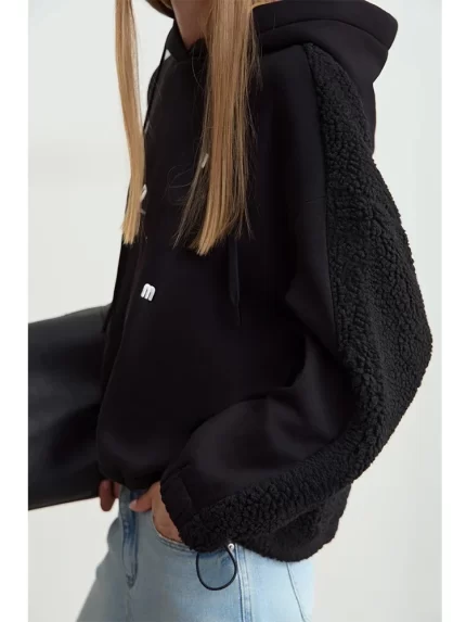 Amii Drawstring Hooded Splicing Imitation Lamb Wool Sweatshirt Embroidered 2024 Winter Women’s Loose Thermal Tops 12444131 – AliExpress