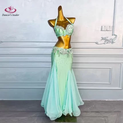 Belly Dance Adult Dress With Rhinestones, High-End Mint Green Bra, Hip Hugging Long Skirt, Samba Women’S Professional Clothing – AliExpress 200000532