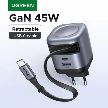UGREEN 45W GaN Retractable Cable Charger UFCS PPS QC For iPhone 16 15Pro Samsung S25 iPad Macbook Air Tablet PD 3.0 Fast Charger