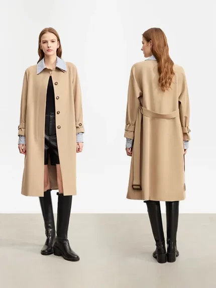 AMII Trench Coat Woman 2025 Autumn New Double-breasted Versatile Outerwear with Belt Medium-long Straight Jackets Female12343395