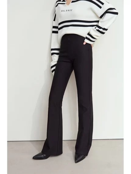 AMII Minimalist Casual Comfortable Flared Leggings for Women Embroidered Fleece Slimming Black Pant Lady 2024 Winter 12424095