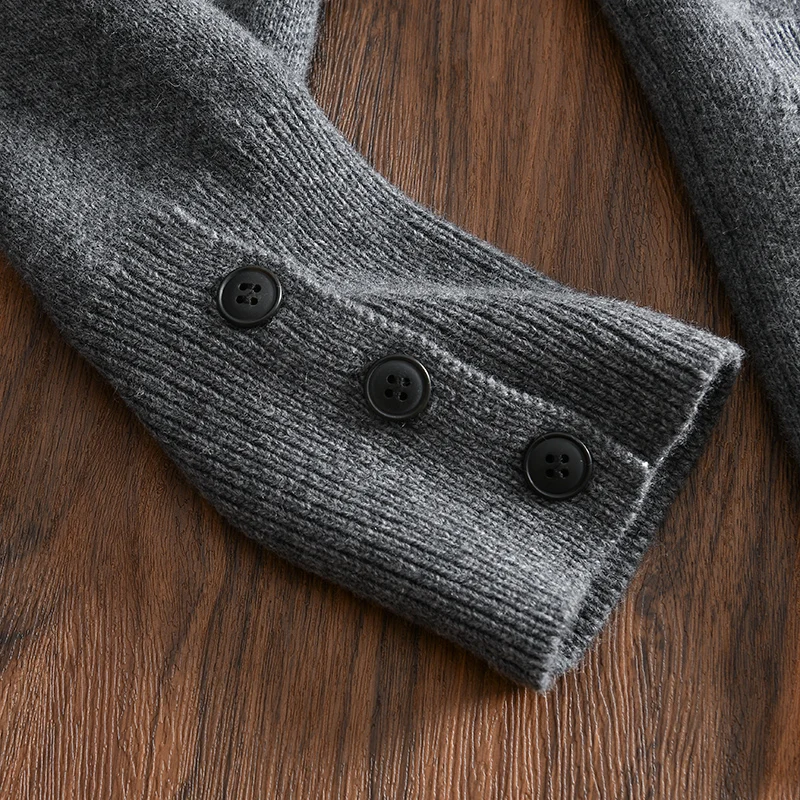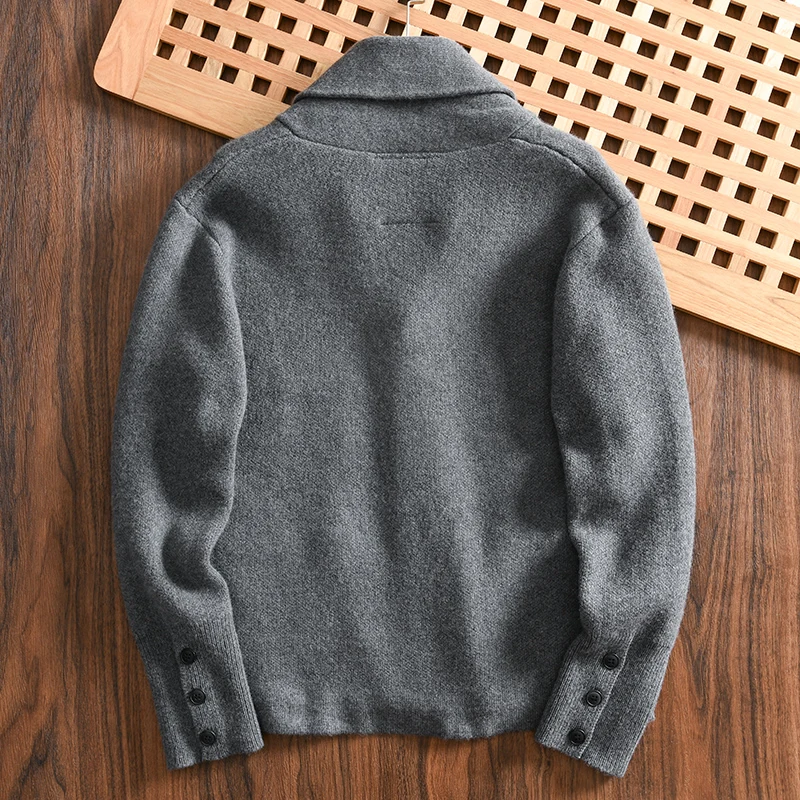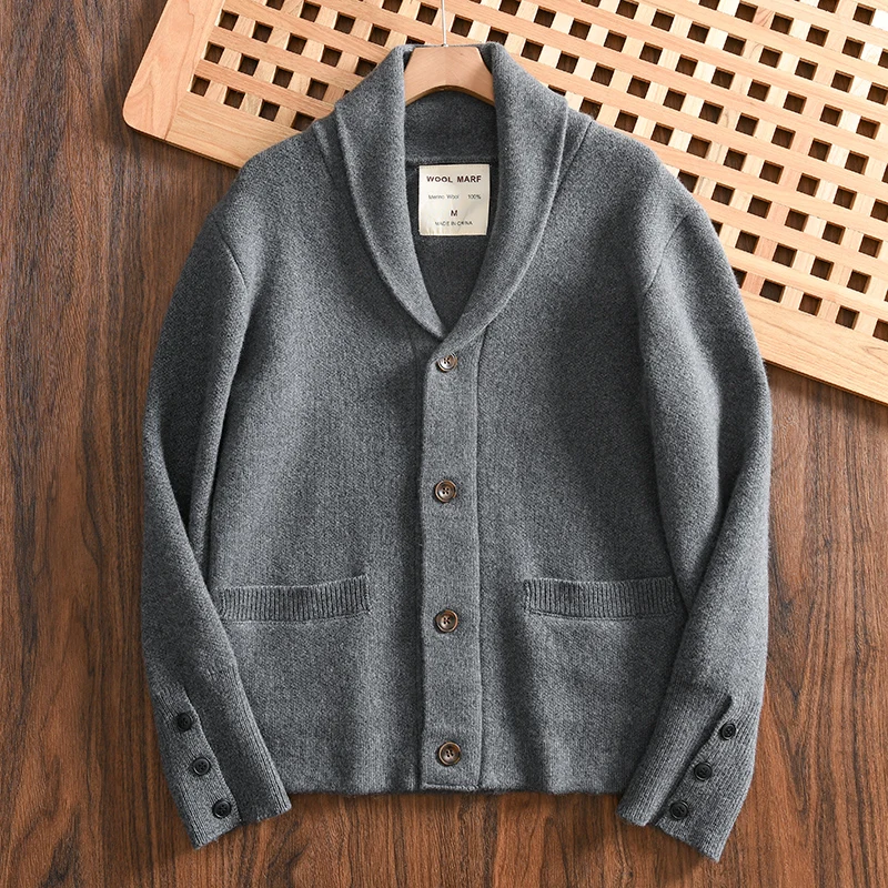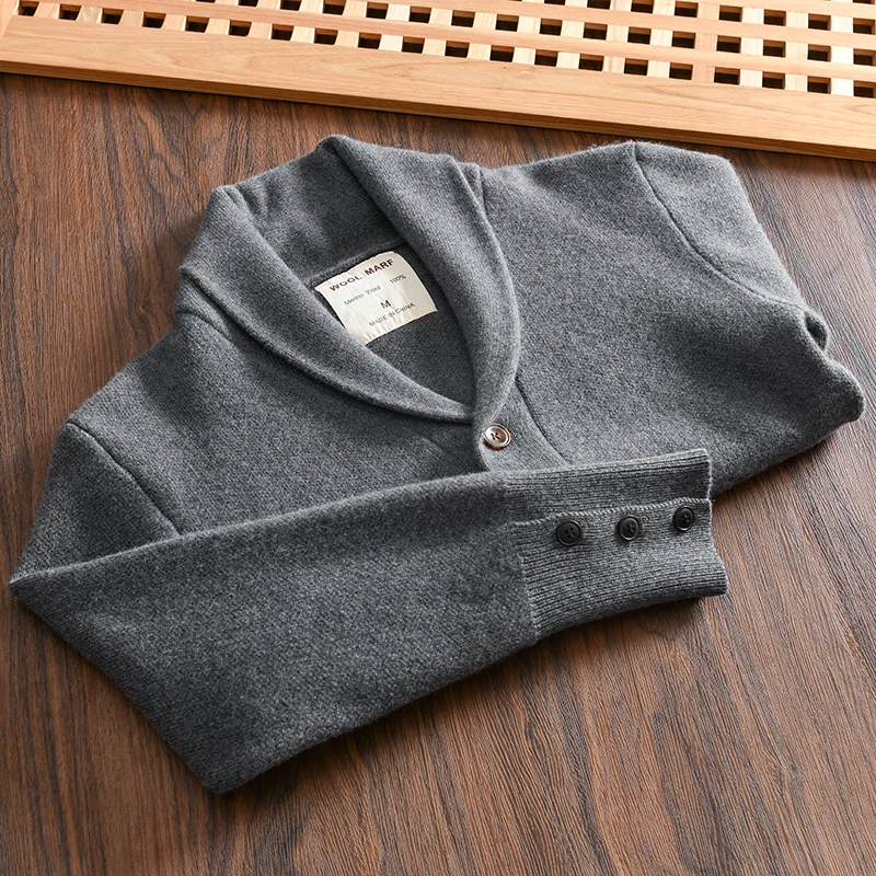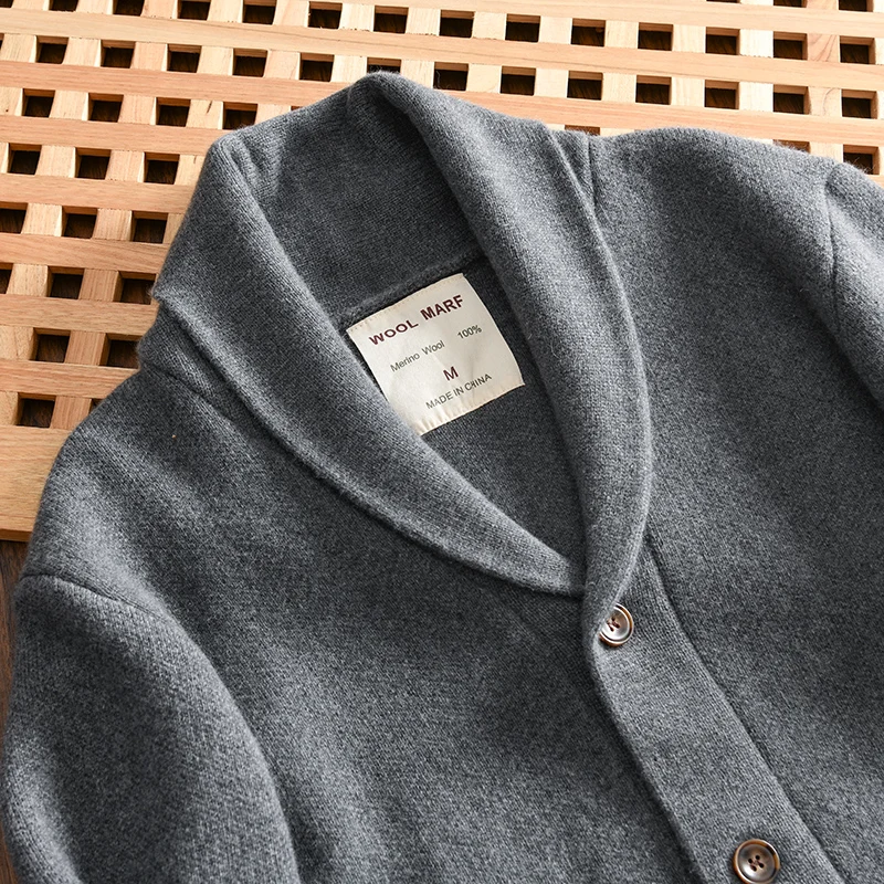 100% Merino Wool Men’s Knit Cardigan with Shawl Collar Premium Autumn/Winter Sweater Jacket 2025 Autumn Winter