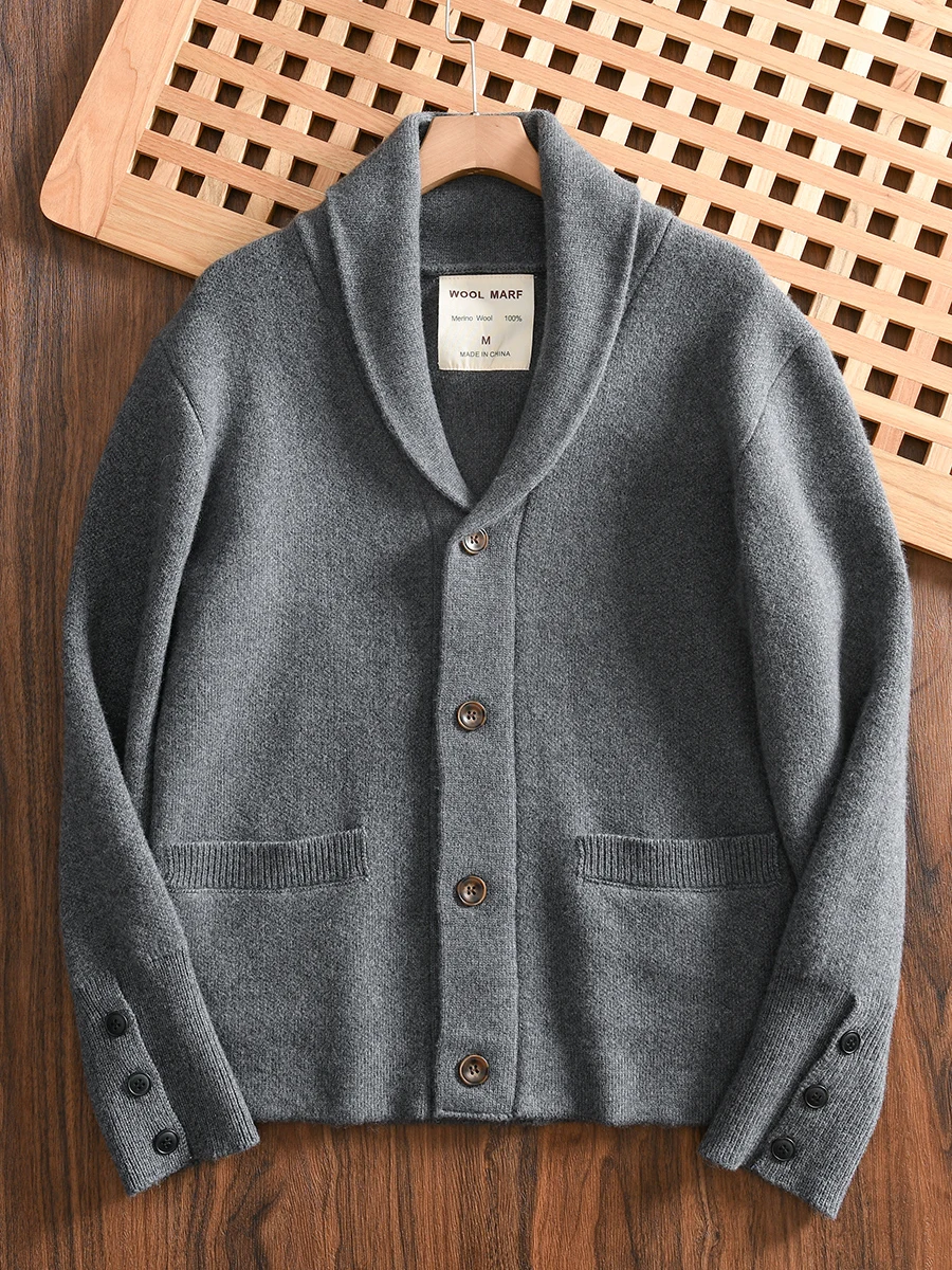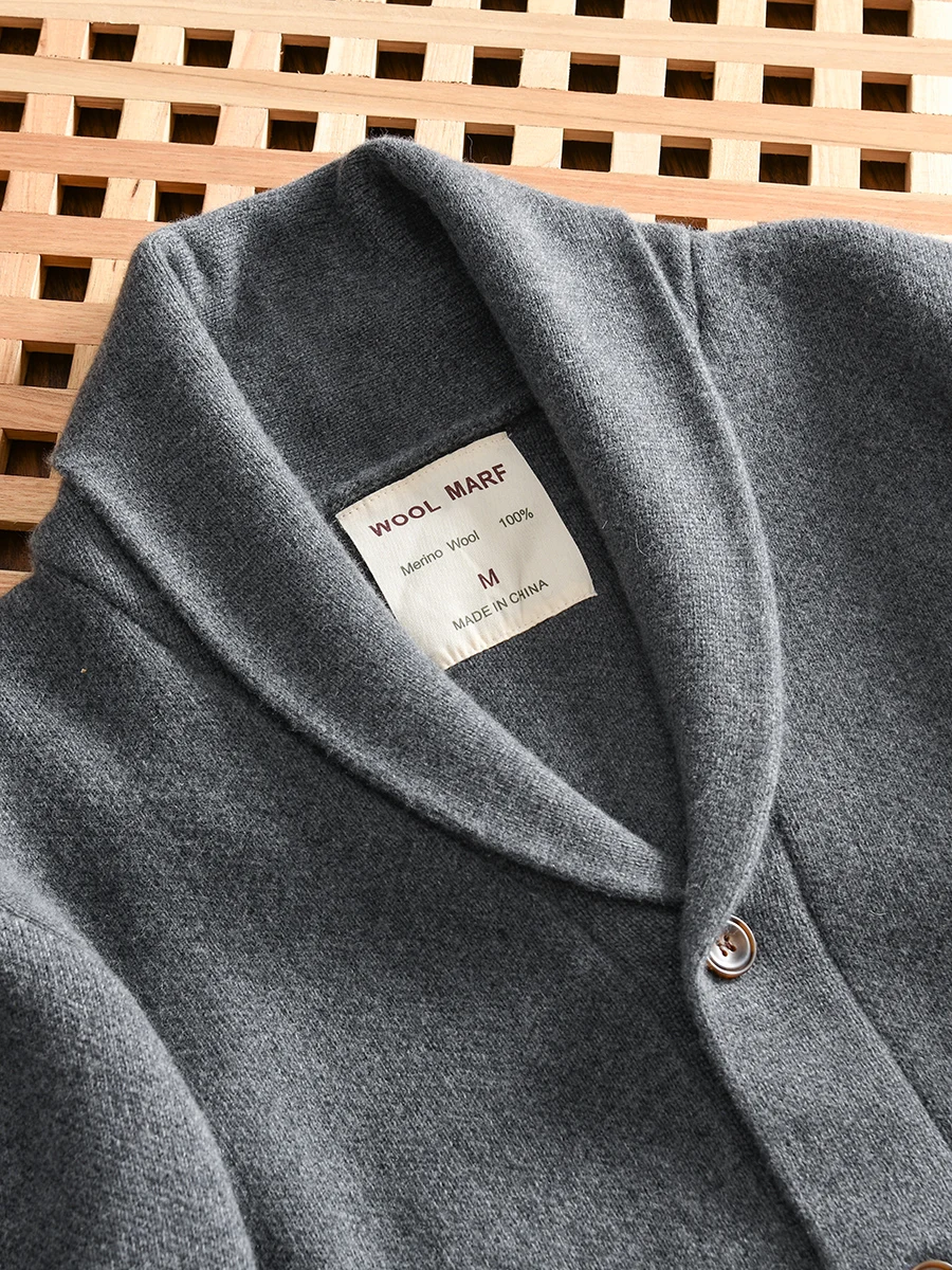 100% Merino Wool Men’s Knit Cardigan with Shawl Collar Premium Autumn/Winter Sweater Jacket 2025 Autumn Winter