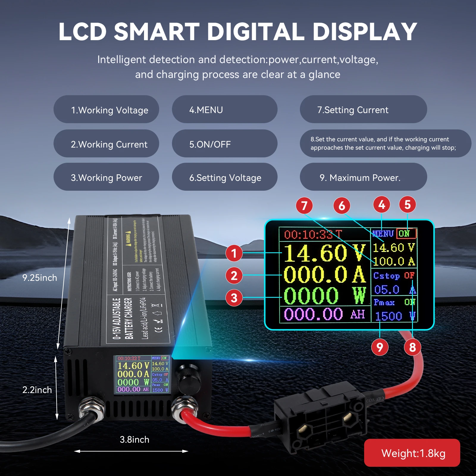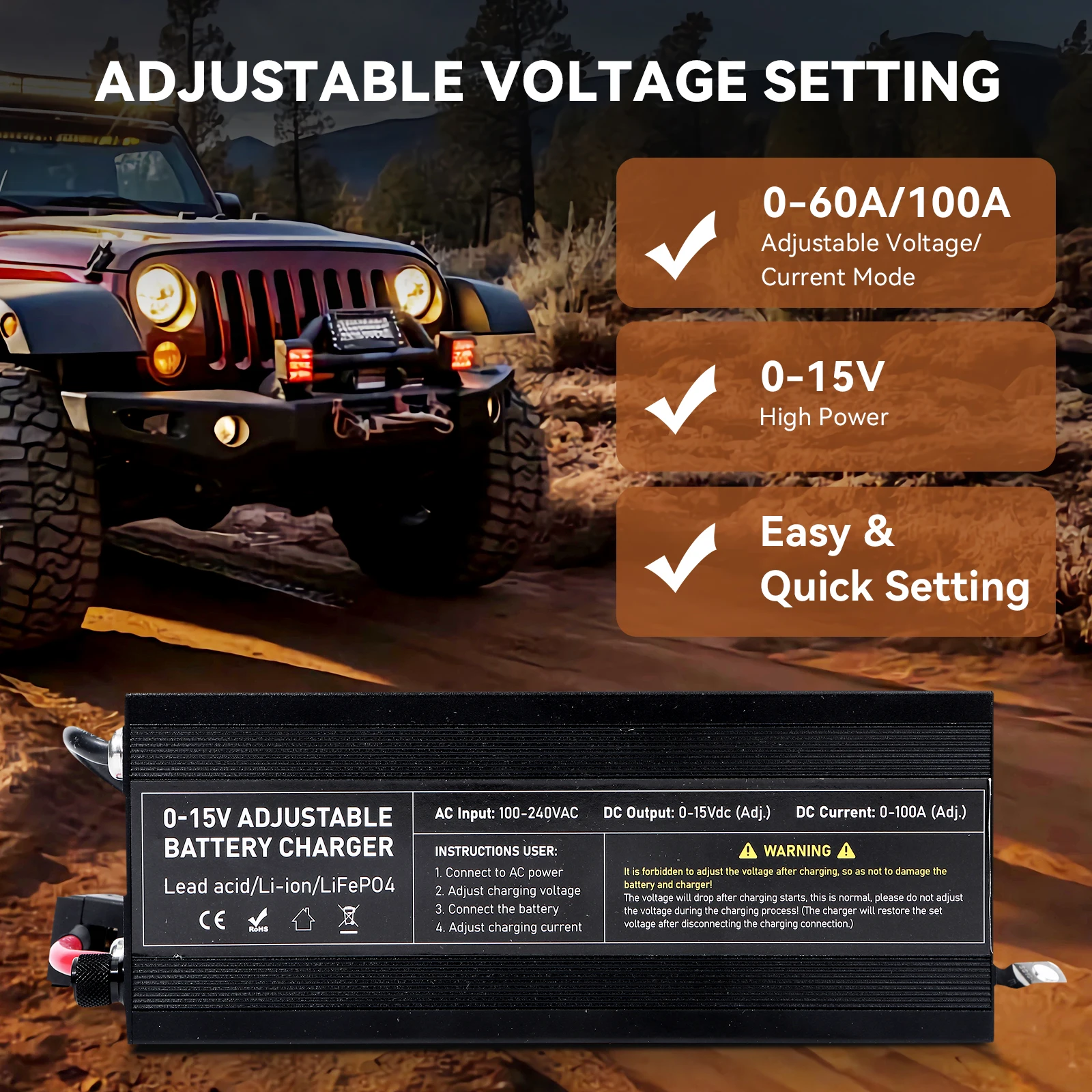12V LiFePO4 Battery Charger 60A 900W Lithium Battery Charger 14.6V 100A 1500W Adjustable Voltage /Current 3S 4S Fast Charger