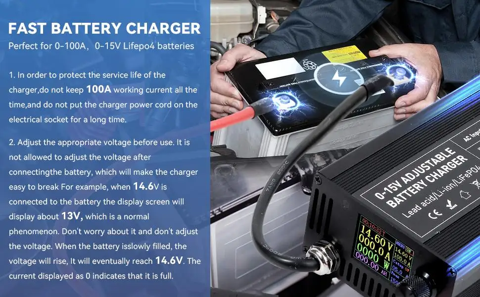 Be the first to review “12V LiFePO4 Battery 60A 100A Anti reverse connectionAdjustable voltage and current Fast Large Screen Display Charger”