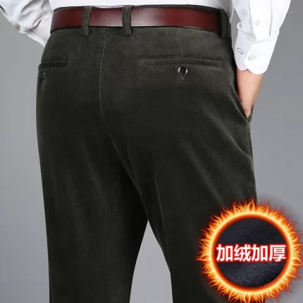 7712 Winter Corduroy Thick Warm Casual Pants for Men Middle-aged Men Vintage Trouser High Waist Loose Straight Solid Color Pants