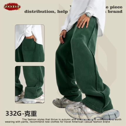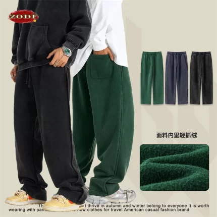ZODF Retro 2024 Winter Washed Fleece Pants For Men Unisex 332gsm Oversized Warm Soft Straight Trousers Brand Clothes HY0875