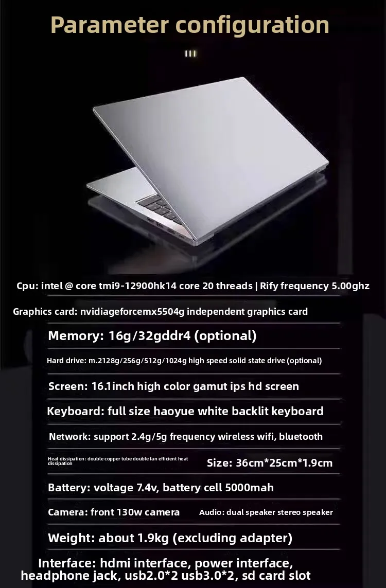 16-Inch Core i9 Display Laptop High Performance Gaming Business Office Design Student Entertainment